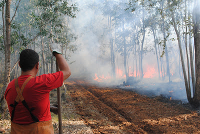 Os bombeiros estão tendo muito trabalho na tarde desta segunda para combater um incêndio às margens da RS-377. Foi na propriedade de Adair Bazana e o fogo queimou em torno de 8 hectares. A seca e o vento favoreceram para que o fogo se alastrasse rapidamente em meio a uma floresta de eucaliptos. Para apagar as chamas os soldados contam somente com abafadores, já que não há acesso para que o caminhão chegue ao local.