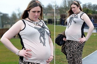 Uma mulher de 33 anos, moradora de Hull (Inglaterra), passou os últimos 15 “grávida” de 8 meses. Na verdade, como se estivesse grávida. Pois Joanne Turton sofre de uma doença não diagnosticada que provoca um grande inchaço no seu estômago e a faz parecer como se estivesse em estágio avançado de gestação.