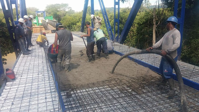Jaguari – A Eco Pontes que executa a obra já iniciou a concretagem do piso no lado que dá acesso ao centro da cidade. Anteriormente a empresa já havia concretado o piso e passeios nos módulos centrais da ponte, bem como na extremidade que dá acesso ao bairro Rivera. O próximo passo deverá ser a instalação das telas de proteção nos passeios da ponte, por onde passarão os pedestres, e a implantação dos guarda-rodas de concreto em toda a extensão do piso dos vãos intermediários. Por último, será colocado o vão que caiu em 2015 e a iluminação ao longo da ponte.