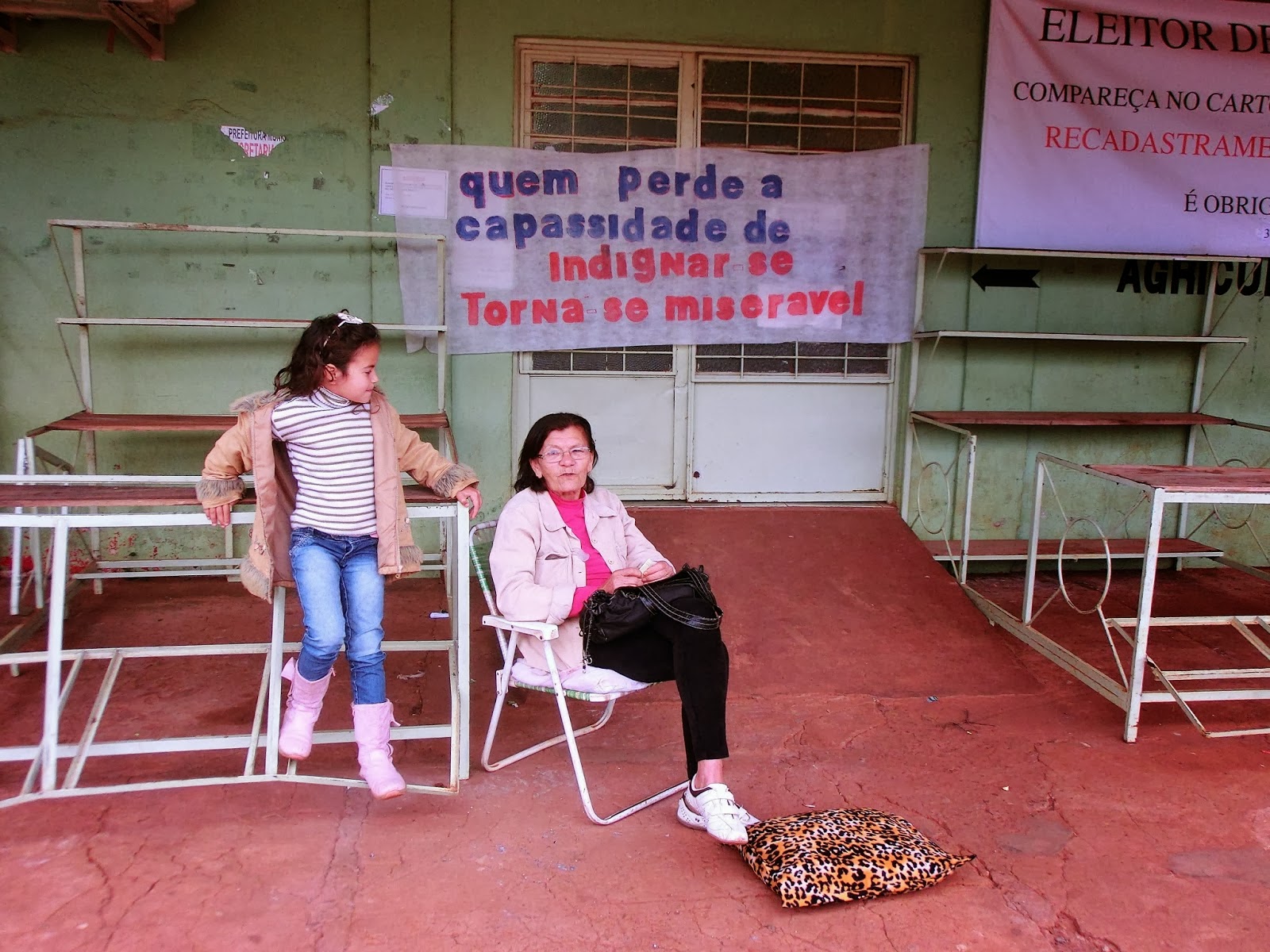 Cansada do lero-lero da Secretaria da Agricultura sobre uma prestação de serviço da patrulha agrícola, com horas-máquina pagas desde o ano passado, Ivonete da Silva Monteiro (Teca) resolveu protestar. Nesta semana ela pendurou uma faixa na porta da secretaria e ficou esperando o secretário e o assessor chegarem para trabalhar.