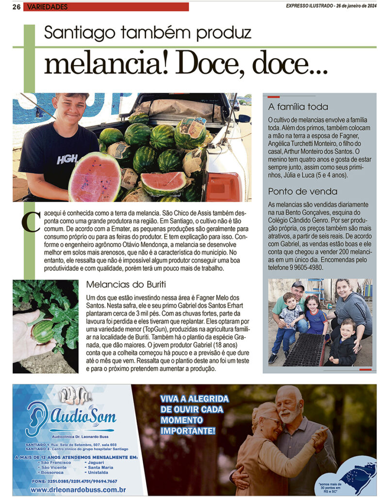 Cacequi é conhecida como a terra da melancia. São Chico de Assis também desponta como uma grande produtora na região. Em Santiago, o cultivo não era tão comum. Não era, porque agora tem gente investindo nessa área.