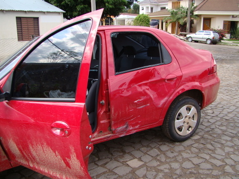 O carro (conduzido pela enfermeira Sandra Ciochetta) foi atingido na porta do carona, um dos vidros foi quebrado no impacto e os estilhaços ficaram nos bancos dianteiros.