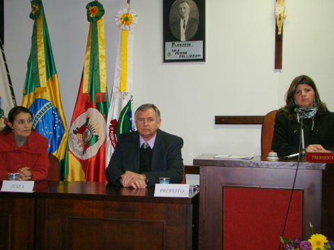 | Juíza Ana Paula, prefeito João Mário e presidenta Cátia Siqueira |