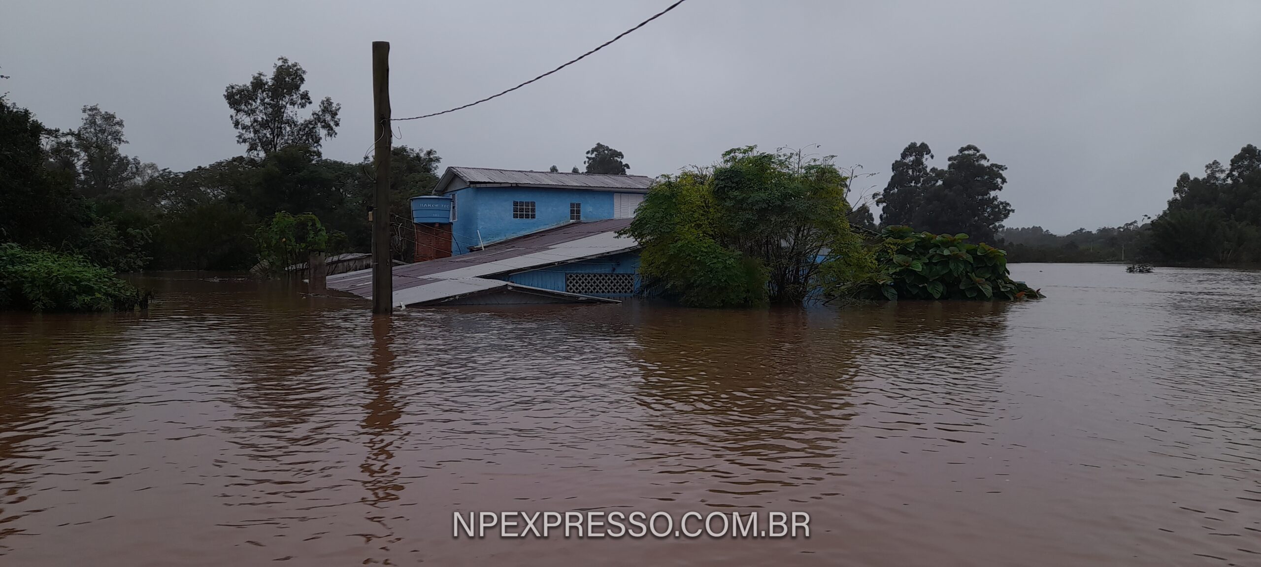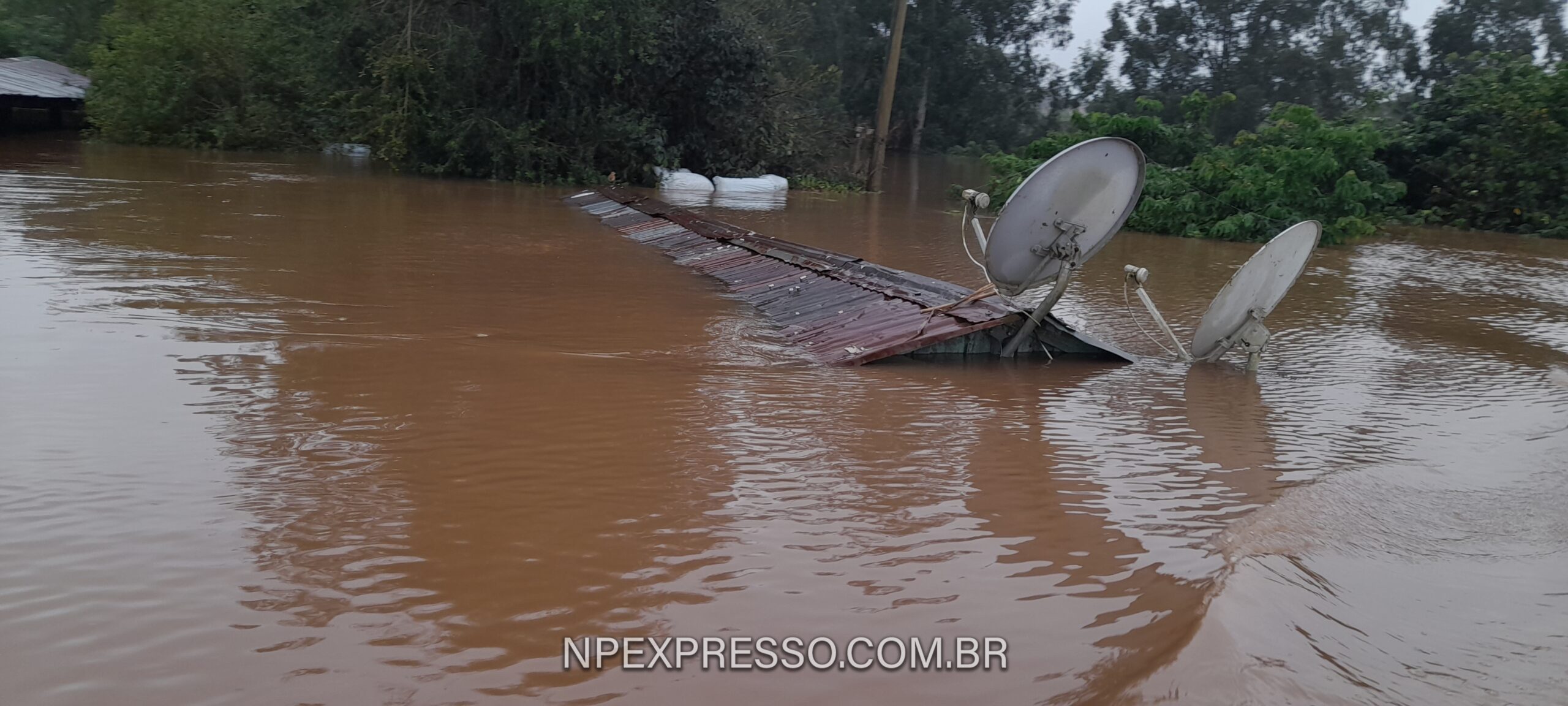 Animais lutam pela sobrevivência em cima de casas, outros estão mortos. Móveis sendo carregados pela força da água. Em algumas partes mais baixas, é possível avistar apenas o telhado de algumas residências.