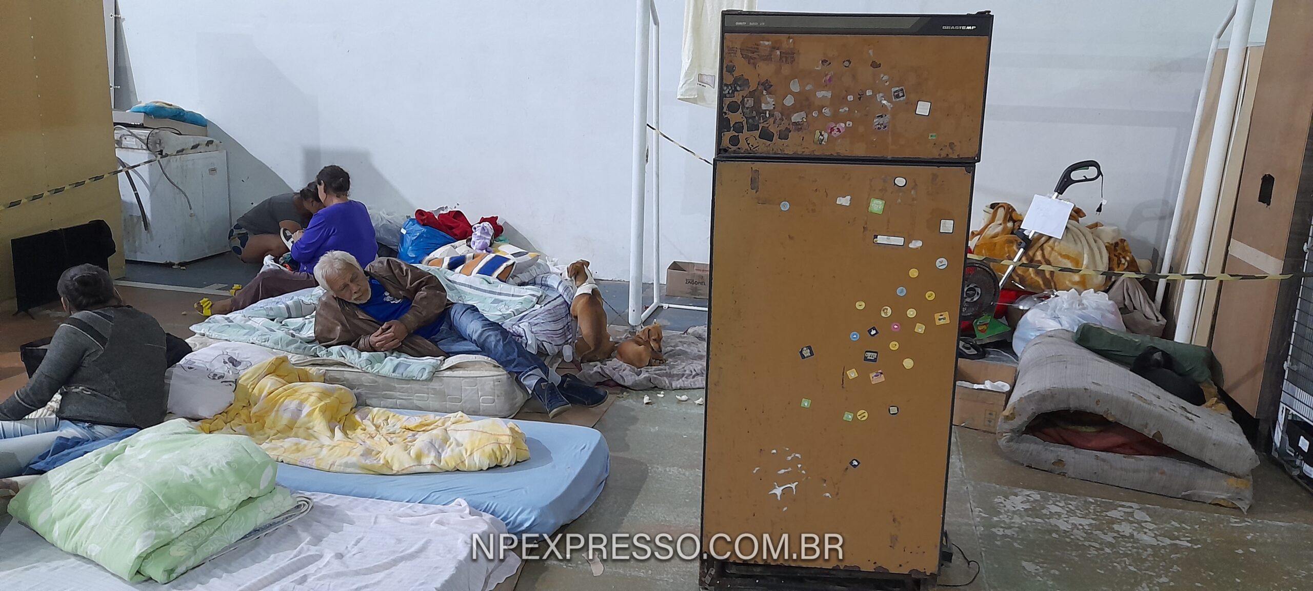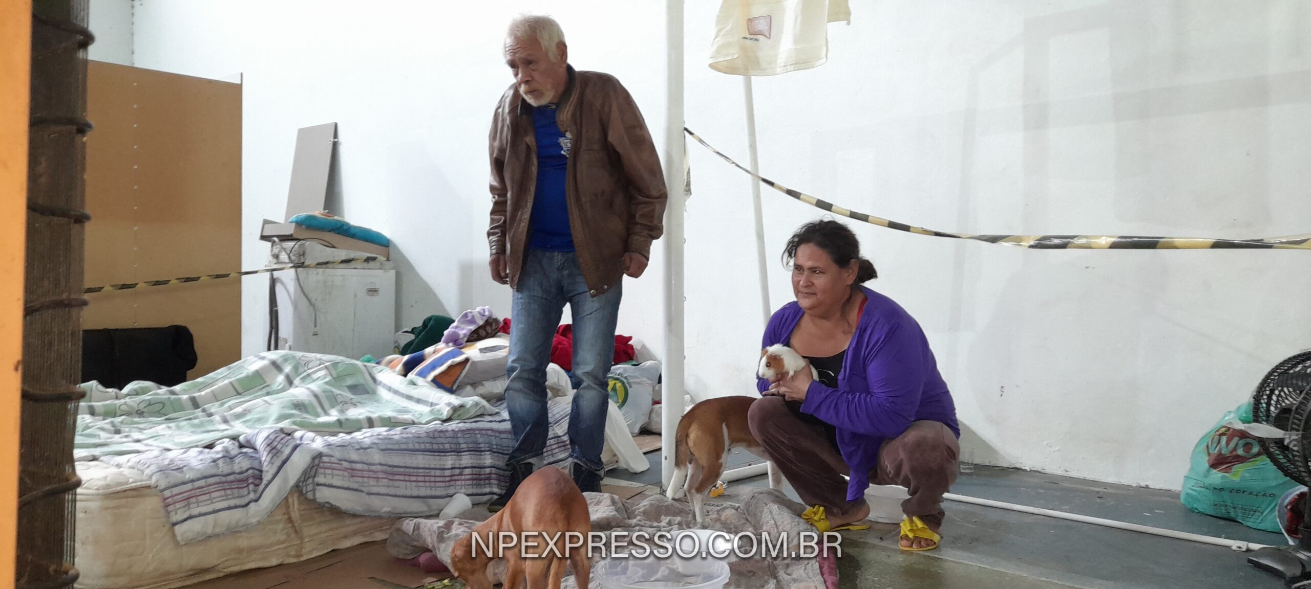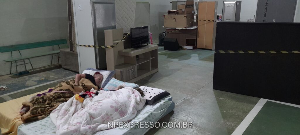 A família do seu Dionísio (73 anos) também está abrigada no local. Eles moram na rua Coronel Flores, perto do Centro Poliesportivo. Quando a água invadiu a casa, só deu tempo de retirar uma geladeira e a TV. A esposa, Luciara Nardes (37 anos), conta que é a segunda vez que sofre com a cheia do rio, mas desta vez a situação foi bem pior.