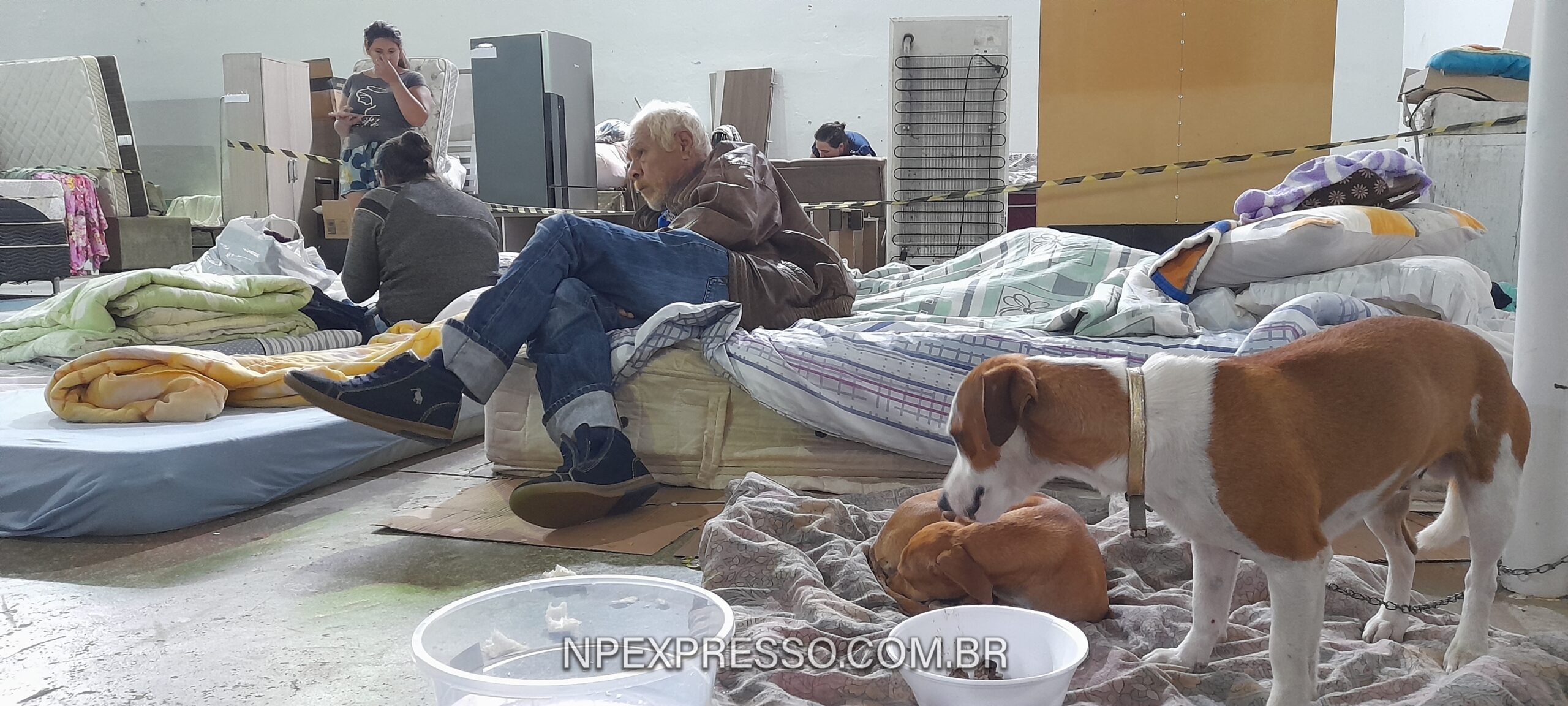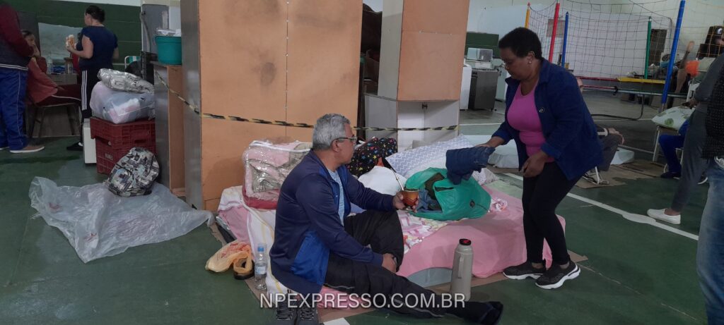 Um dos desabrigados é o senhor Gelson Luís Soares (foto abaixo). Ele e a esposa estão abrigados na antiga escola São José. O casal mora no bairro Sagrado Coração de Jesus e foi retirado de casa às 3h da madrugada de quinta. Ele conta que não deu tempo de salvar nada, apenas pegou algumas roupas e os documentos. Em 26 anos morando na cidade, ele relata que é a primeira vez que enfrenta tal situação.