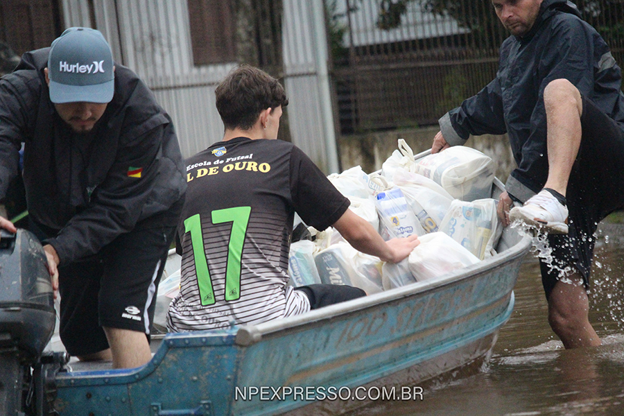 Nas partes mais altas, como o conhecido Cerro dos Zanini, os moradores estão ilhados. Voluntários com barcos prestam auxílio, transportando as pessoas e fornecendo alimentos. um deles é Guilherme Cochlara (foto à esquerda), que atua desde o primeiro dia de enchente e já prestou centenas de atendimentos.