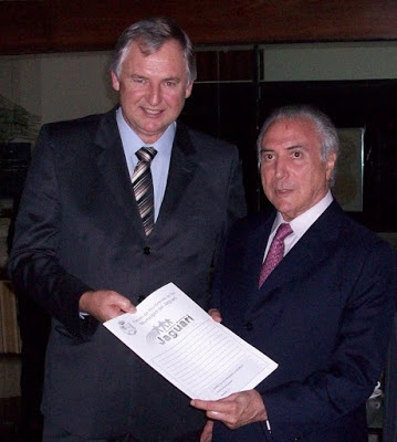Jaguari – A notícia de que o prefeito João Mário (à esquerda) poderia ir para Brasília trabalhar ao lado do vice-presidente Michel Temer mexeu com a política regional. O prefeito, porém não disse se aceita. Vale lembrar que João Mário também já foi convidado pelo governo Sartori. Caso ele ainda aceite algum convite, teria que entregar o atual cargo ao vice Sidi Santos (PT).