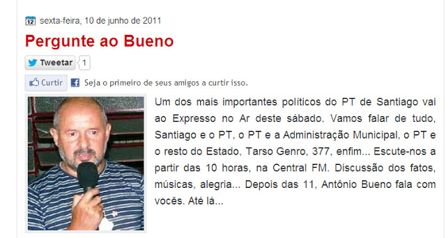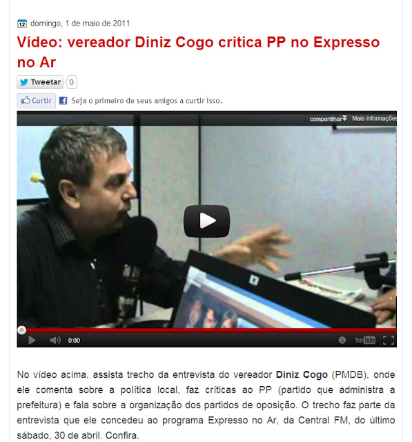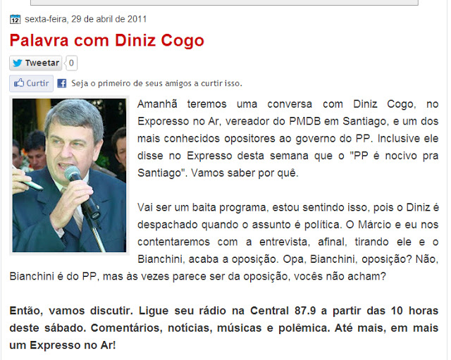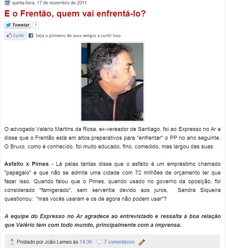 E quero que alguém me diga quando foi que nos recusamos a publicar algo crítico que tenha partido de um deles: Valério da Rosa (PMDB), Diniz Cogo (PMDB), Antônio Bueno (PT) ou outro político qualquer.