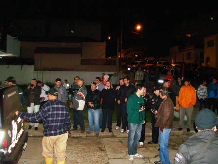 | Público em frente à delegacia na chegada da quadrilha. |