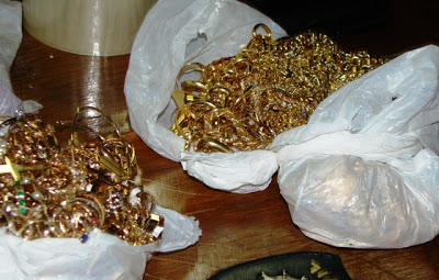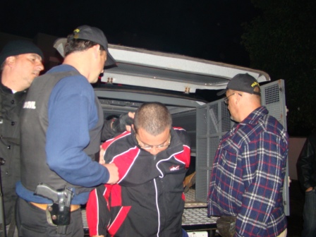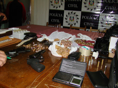 Durou pouco a alegria dos bandidos que assaltaram a Ótica Fank hoje pela manhã e roubaram joias. Eles foram pegos agora há pouco numa barreira em Roque Gonzales (perto de São Luiz) e foram trazidos para a Delegacia de Santiago para serem interrogados. O valor das joias avalia-se de 200 a 500 mil reais. Os bandidos não são de Santiago.