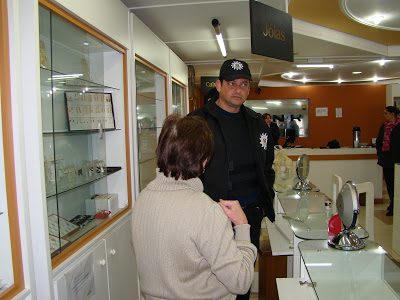 Por volta das 10h30 três homens assaltaram a Joalheria Fank, no centro de Santiago. As funcionárias contaram que eles estavam bem vestidos e se fizeram passar por clientes, até que um deles mostrou a arma e disse que era um assalto. Eles amarraram as mãos das funcionárias com fita crepe e ordenaram que não se mexessem ou iriam atirar. Levaram uma grande quantidade de joias que estava nas prateleiras e fugiram num Polo prata. As forças policiais da região estão em alerta.