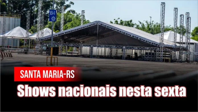 Santa Maria, RS – O estacionamento do Shopping Praça Nova está em ritmo intenso de trabalho desde o início da semana. Nesta quarta (26), equipes montam o grande palco que vai receber, nesta sexta (28), os shows nacionais de Lauana Prado e do grupo Menos é Mais, a partir das 18h.