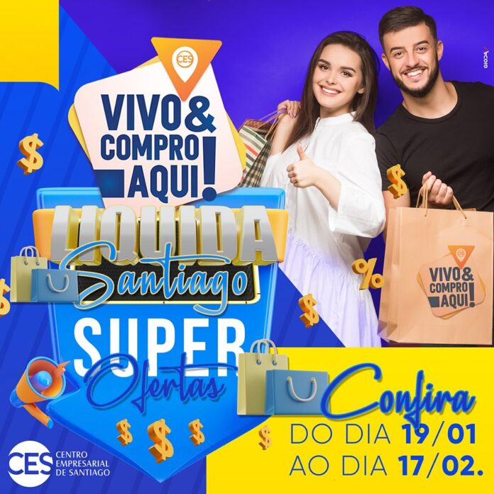 O Centro Empresarial está com mais uma edição do Liquida Santiago. Aproveite as superofertas do comércio local até o dia 17 de fevereiro. Não perca a oportunidade de fazer as suas compras nas lojas com adesivo da campanha.
