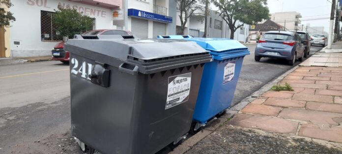 Santiago – O município está fazendo a instalação de 300 novos contêineres na área central. Com isso, aumenta de 50 para 150 pontos de coleta, melhorando a separação do lixo. Os novos equipamentos foram distribuídos estrategicamente, facilitando o acesso para empresas e prédios residenciais. A principal mudança está na disposição dos contêineres: em cada ponto, são dois modelos, um azul para resíduos recicláveis e outro preto para rejeitos.