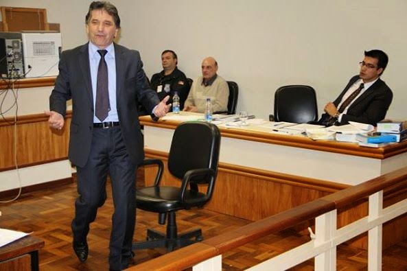 Santiago – O advogado Dionísio da Costa (foto) conseguiu tirar da cadeia o réu Luiz Bonotto (ao fundo, de blusa clara), santiaguense julgado e condenado pela morte do motorista de transporte escolar Giovani Altamir dos Santos Marques, em 2012. Como o advogado conseguiu anular o júri, o Tribunal concedeu liberdade ao réu até que seja julgado novamente.