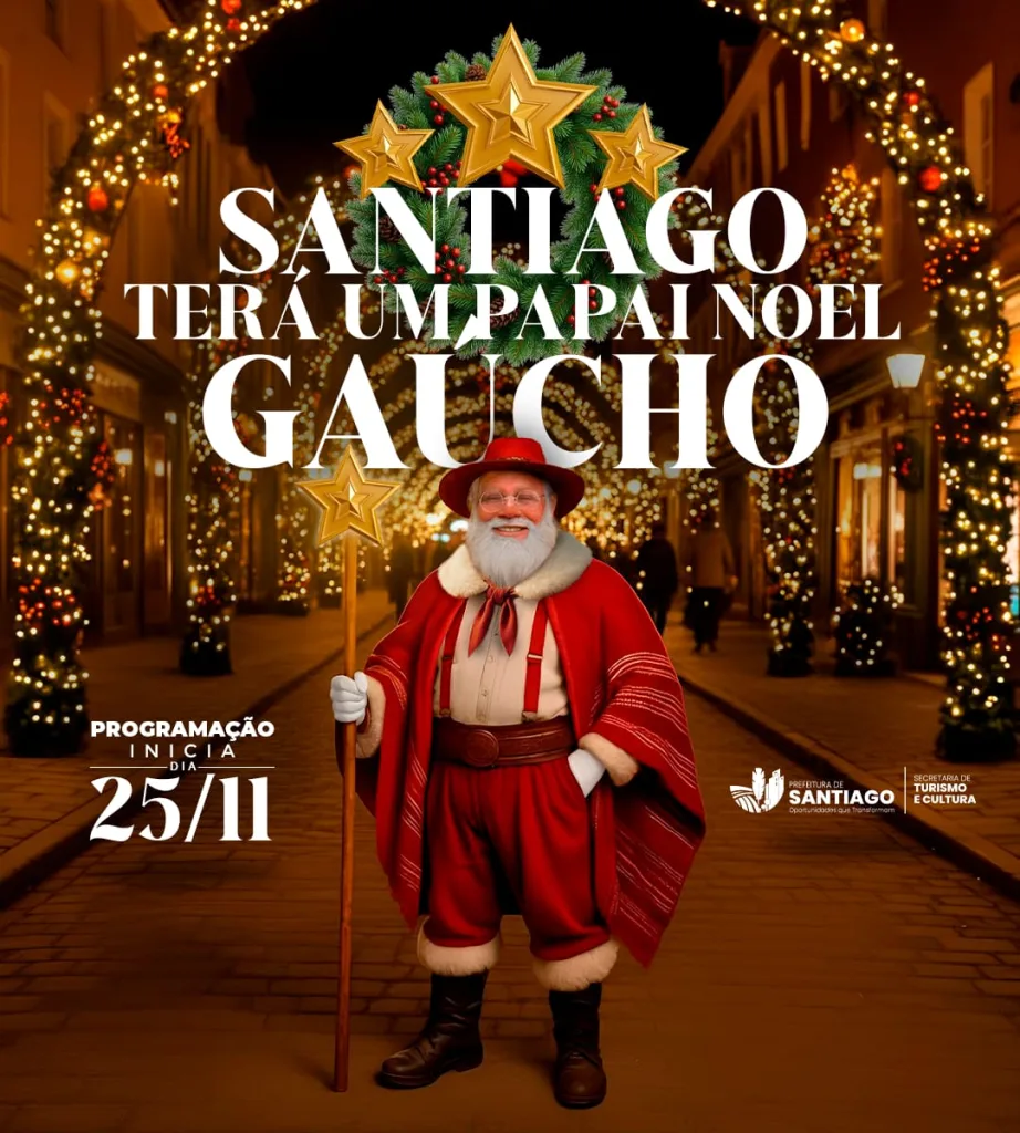 O evento “Santiago: a Querência do Natal” é uma realização da administração municipal, por meio das secretarias de Turismo e Cultura e de Desenvolvimento Econômico, com apoio do Centro Empresarial e da Secretaria de Estado da Cultura/RS.