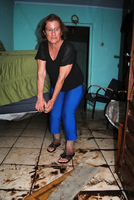 Uma senhora de 87 anos teve que sair da cama por causa da água.