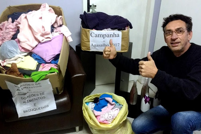 Santiago – Muita gente está colaborando com a Campanha do Agasalho 2017. Nesta semana foi a vez do bairro São vicente fazer sua parte. Os moradores se mobilizaram e doaram muita coisa. “Vamos encaminhar as doações para a Loja do Agasalho, muito felizes por termos feito a nossa parte e contribuído com as pessoas que necessitam”, afirma o presidente João Leonel (foto).