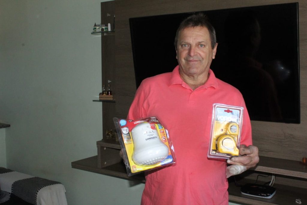Idalécio Colpo, 56 anos, é morador da rua Wilson Marchiori em Jaguari. Ele já é do nosso time de assinante e, no sorteio, ganhou uma Maxi Ducha da Lorenzetti + um jogo de trenas da Vonder.