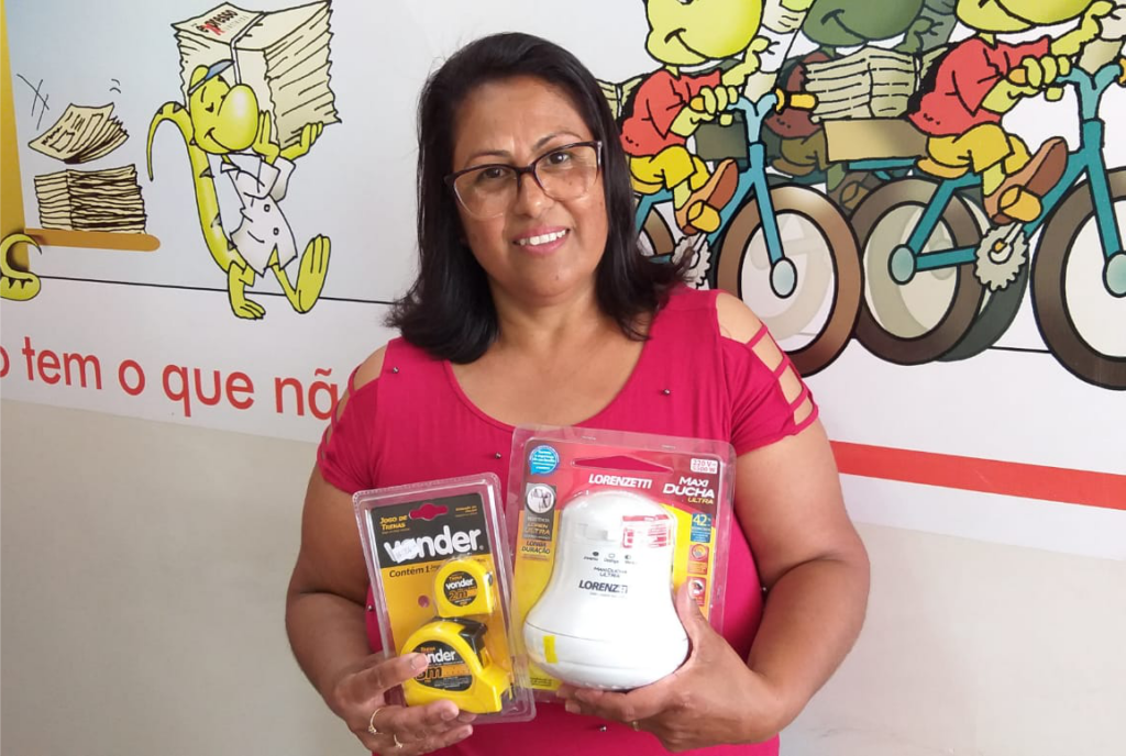 A santiaguense Eliane Margarete Pereira (56 anos) é moradora da rua João Brandão. Assina o jornal Expresso há doze anos e sempre está de olho no que acontece na cidade e região. Na sexta, quando chega o jornal, primeiro confere os destaques e, durante a semana, vai lendo as demais notícias. Na casa da dona Eliane a leitura é compartilhada entre o esposo e a filha, que também ficam bem informadas com o Expresso. No sorteio, Eliane ganhou uma Maxi Ducha Lorenzetti + um jogo de trenas da Vonder.