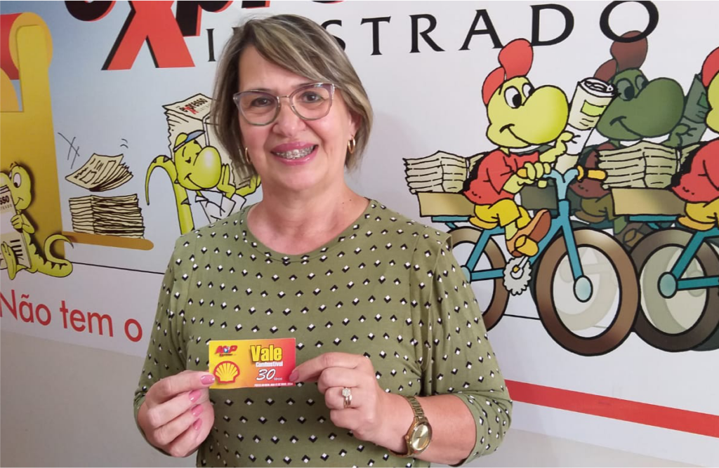 Clara Helena de Castro Viero (61anos) é moradora da rua Bento Gonçalves em Santiago. Ao longo dos anos a assinatura passou de mãe para filha. Juntas já se vão 26 anos com o Expresso. Num gesto de carinho, a filha Clara lê as notícias para a sua mãe Hilda (94 anos), e assim a família fica por dentro das notícias. No sorteio, ela ganhou um vale-combustível de 30 litros do Posto Shell (Rua Treze de Maio, 2034)