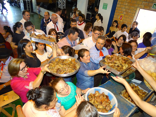 Após, muita gente foi festejar no CTG e em suas entidades, mas a maior parte da população foi para o ginásio de esportes onde o churrasco era de graça para todos os unistaldenses, tradição que vem sendo mantida há mais de 10 anos no município.