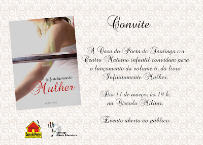 Santiago – O lançamento do livro Infinitamente Mulher marcou o final da semana da mulher em Santiago. O evento foi no último sábado no Círculo Militar. Esta 5ª edição teve 48 participantes. Muitas autoridades, imprensa e convidados foram ouvir a mensagem dos organizadores e pegar um exemplar. A iniciativa é da prefeitura de Santiago e Casa do Poeta.