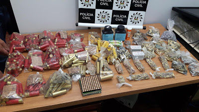 A Polícia Civil em parceria com a Polícia Federal registrou hoje (11) a maior apreensão de munição no município nos últimos cinco anos. Os policiais encontraram mil cartuchos de vários tipos de armas dentro de uma mesa com fundo falso em uma casa no bairro Vista Alegre. Foram presos um senhor de 75 anos e uma mulher de 43 anos. Durante a tarde, um homem de 50 anos compareceu à delegacia contando que era o dono da munição. O indivíduo já tinha antecedentes por contrabando internacional.  Como ele não foi pego em flagrante, prestou depoimento e foi liberando. No entanto, o idoso e a mulher continuarão detidos, já que foram pegos em flagrante.