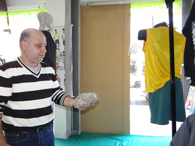 Empresário Kamal A. Karin mostra a pedra usada pelos ladrões.