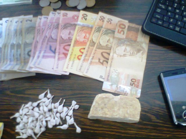 A Brigada prendeu Marcelo Walau de Freitas em frente à sua casa no último sábado, 10 da noite por tráfico de drogas. Ele já está no presídio de São Chico. No bolso da bermuda a polícia achou 10 pedras de crack e 224 reais. A quantidade e o dinheiro demonstram que ele vendia o produto. E na casa havia uma pedrona de crack de 79,54 gramas mais outras pedras pequenas e um “tijolo” de 6.04 gramas. Também tinha um maço de papel para a embalagem, dois telefones celulares e um tablet mx.