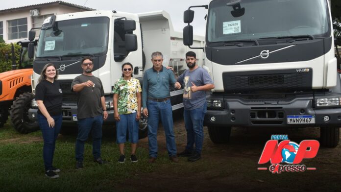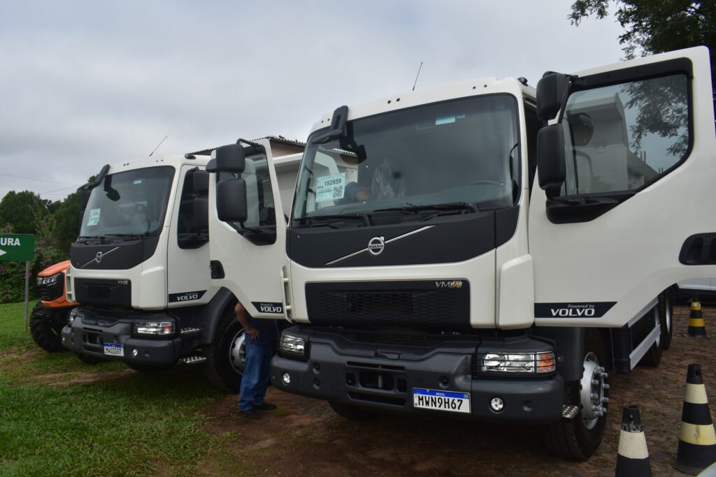 Nesta quarta (10), a Prefeitura recebeu dois novos caminhões Volvo, modelo Caçamba Basculante 6X4, que se somarão à frota municipal para atender às demandas.