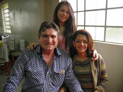 | Lúcia com o companheiro Sérgio e a filha Bruna. |