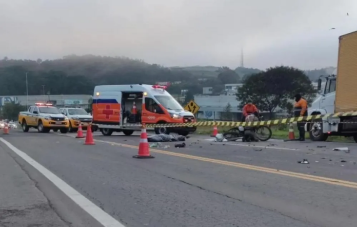 Um caminhão também se envolveu na ocorrência, atingindo a motocicleta. Ela morreu no local.
