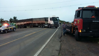 estava atravessado na BR 287, interrompendo o trânsito das 5h30 às 8h. O
