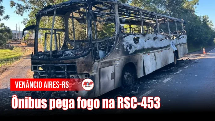 Venâncio Aires (RS) – Um ônibus pegou fogo na madrugada desta quarta-feira (11) na RSC-453, no Vale do Rio Pardo. O incêndio foi registrado por volta das 5h25.