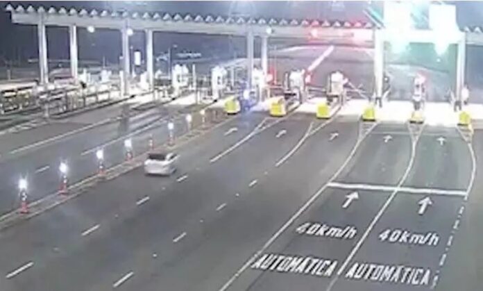 Motorista quebra cancela de pedágio, atira garrafas na estrada, mas é preso em carro roubado