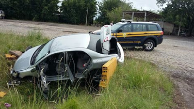 | Carro virou em São Borja deixando família ferida. |