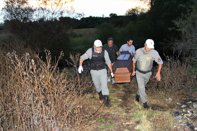Santiago – O corpo de uma mulher ainda não identificada foi encontrada por pescadores no local conhecido como Poço da Cruz, no bairro Bonato, na tarde de terça (20). Ela foi morta com dois tiros no peito e tinha uma lesão na cabeça, causada provavelmente por uma coronhada. A vítima estava sem documentos e aparenta ter entre 30 e 40 anos. A polícia suspeita que ela não seja de Santiago, já que não há registro de desaparecimento. Conforme o delegado Guilherme Antunes, a perícia apurou que a vítima foi executada durante a madrugada (entre 5 e 6h), no mesmo local onde o corpo foi encontrado.(foto; Rafael Nemitz)