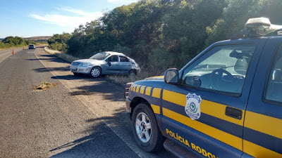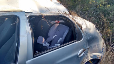 Santiago – Unistalda – Um prisma dirigido por André Bernardi da Silva, 34 anos, saiu da pista perto de Unistalda e capotou três vezes quando viajava na 287 Santiago/São Borja. Ele teve lesões leves, mas a esposa Lisiane Berti Guedes da Silva, 31 anos, se feriu gravemente, pois estava sem cinto e acabou sendo lançada para fora. O bebê de 11 meses nada sofreu. Ele viajava na cadeirinha. Lisiane foi hospitalizada em Santiago. Todos são de São Borja. (Fotos: PRF)
