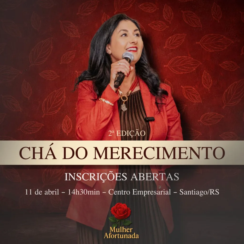 O evento será realizado no próximo sábado (11), às 14h30, no Centro Empresarial de Santiago. As vagas são limitadas e o investimento é de R$ 89. As inscrições podem ser feitas pelo link https://forms.gle/DeitLzq5jyFZB6js8. Mais informações pelo telefone (55) 99922-8072.
