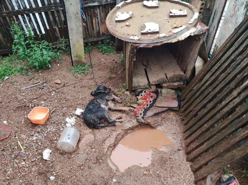 Uma denúncia anônima levou a polícia civil até a casa de duas mulheres de 19 e 37 anos, em Encruzilhada do Sul. Elas foram presas na terça-feira (22) por maus-tratos de um cachorro que foi encontrado no pátio do imóvel em estado anêmico e hipotérmico. Além disso, estava exposto à chuva, com fome e sede. Ele foi resgatado e encaminhado para receber cuidados médicos de um veterinário. Quando estiver recuperado, deve ser colocado para adoção.