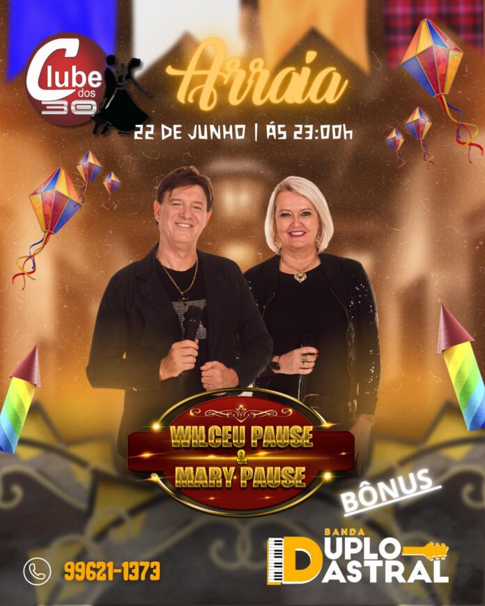 Depois do sucesso do baile dos namorados, o Clube dos Trinta promove neste sábado (22/6) seu tradicional Arraiá. No palco, Wilceu Pause e Mary Pause, primeira vez na casa. E para abrir a festa, a banda Dupla Astral com seu embalo contagiante.