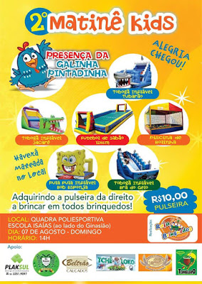 será a presença da Galinha Pintadinha. Haverá sorteio de brindes, músicas,