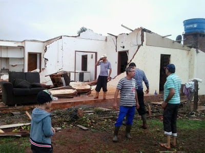 São Miguel das Missões – No último domingo, 24, o pequeno município foi atingido por um tornado que causou destelhamento em mais de 70 casas, no hospital e museu arqueológico. A Sonar Meteorologia confirmou o fenômeno que pode acontecer na passagem de uma estação para outra: verão/outono. Conforme os bombeiros, oito pessoas tiveram ferimentos leves. Também houve falta de energia elétrica. Ainda não foram calculados todos os prejuízos. (Rincão dos Moraes. Fotos/Cras Jupy/Facebook