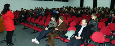 Adriana Dias de Oliveira Papalia falou a alunos e professores. A palestrante já passou por diversos países, como Estados Unidos, Canadá, México, Noruega, Suécia, Itália, Alemanha, República Tcheca, Bélgica, Holanda, Espanha, Polônia, China, Coréia, Argentina, África do Sul e Índia.