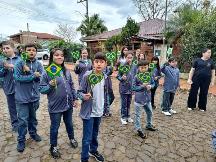 Alunos das escolas São José e José Beninca coloriram a avenida de verde e amarelo na tarde deste sábado, 2 de setembro.