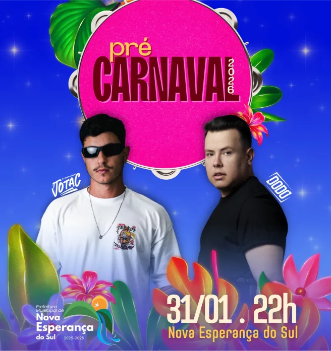 Nova Esperança do Sul já está em clima de folia! O município promove, no dia 31 de janeiro, o Pré-Carnaval 2026, um evento que promete muita música, energia e diversão para toda a comunidade.