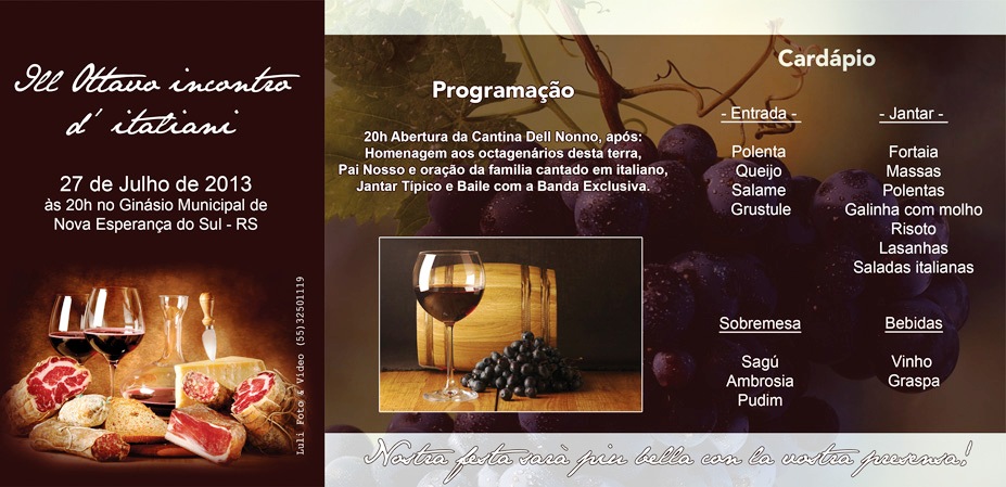 A maior festa gastronômica da região está de volta. A 8ª edição será hoje, 27 de julho, no ginásio municipal de Nova Esperança. Ainda dá tempo de garantir o seu convite na Loja Centro, Luli Foto e Vídeo e Agropecuária Manente. Em Jaguari, convites no Clube União e, em Santiago, na Loja Charrua.