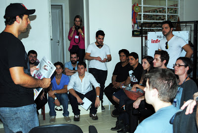Uma turma do 7º semestre do curso de Publicidade e Propaganda, da Unifra, veio de Santa Maria para conhecer o jornal Expresso Ilustrado e também conversar com os editores do site Nova Pauta, que é hoje um dos mais acessados do Estado. Os acadêmicos estavam acompanhados das professoras Fernanda Sagrillo Andres e Caroline Brum e fizeram muitas perguntas, mostrando-se impressionados com o sucesso dos blogs na região e sabendo como surgiu e funciona o Nova Pauta que, em dois anos, teve mais de seis milhões de visualizações. Fizeram muitas perguntas aos editores Márcio Brasil, Denilson Cortes e João Lemes e ao final posaram para uma foto em frente da sede do jornal Expresso Ilustrado.